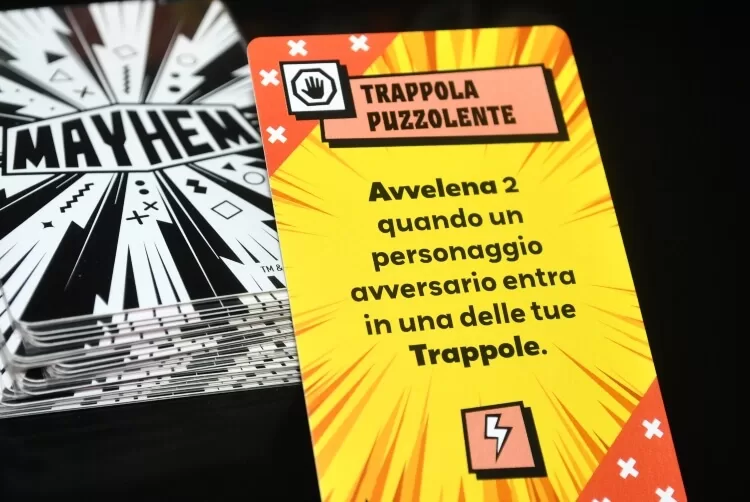I giocatori partono con delle carte Mayhem in mano, scelte tra 7 ad inizio partita. Queste carte hanno degli effetti speciali che possono variare momentaneamente le regole del gioco creando delle combo e degli avvenimenti imprevedibili.