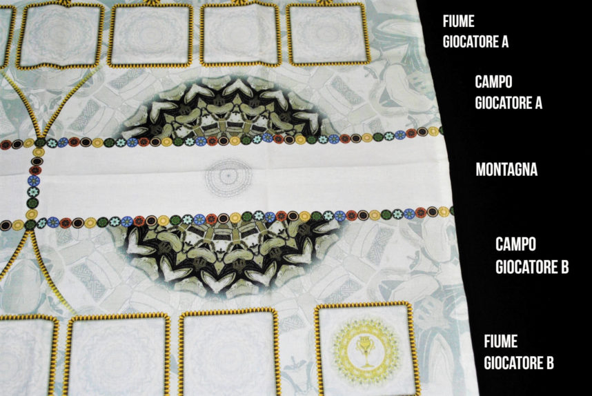 Come visto in precedenza, ogni mandala è diviso in 3 parti: La montagna e i 2 campi dei giocatori.