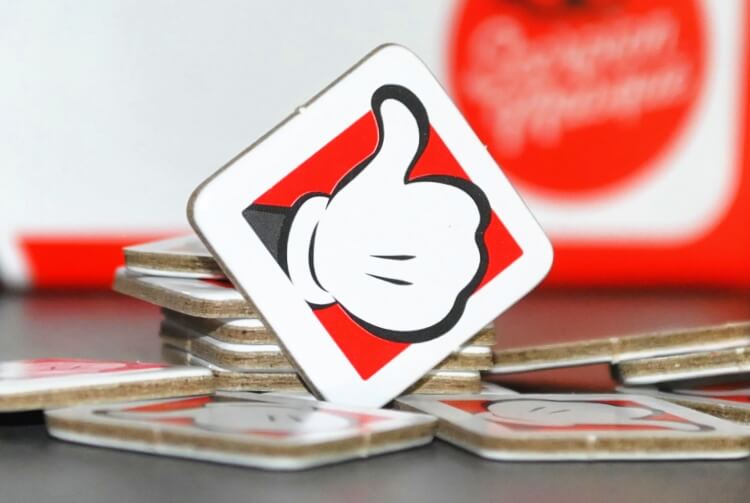 In qualsiasi momento durante la partita, la guida potrà spostare UN segnalino pollice in su di una qualsiasi valutazione, sopra ad una carta indizio ad indicare che quell’indizio è particolarmente legato alla parola da indovinare.