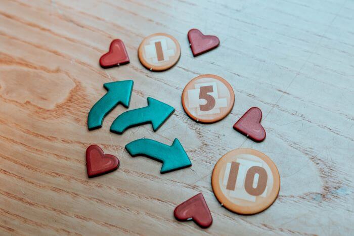 metti 4 token vita (cuori) sul lato sinistro della carta giocatore.