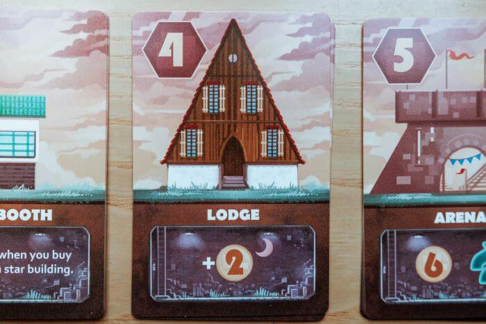 Ogni carta costruzione ti portano monete e/o azioni e condizioni extra.