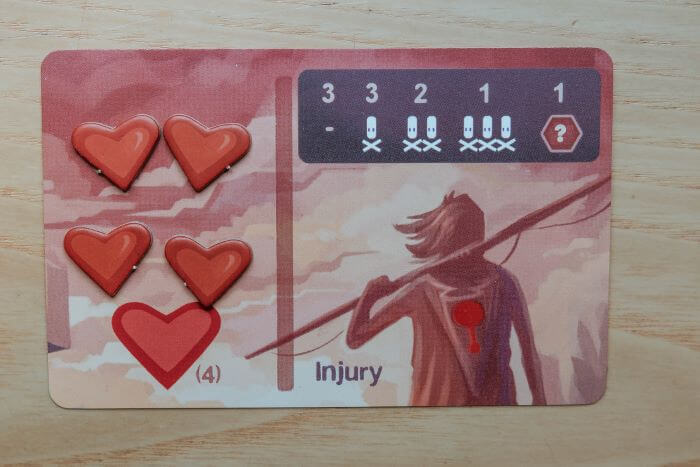 (es: 2 Danni – si spostano 2 cuoricini sul lato destro “Injury” della carta personaggio.