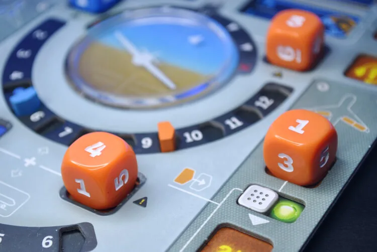 I due giocatori, dovranno posizionare ed incastrare di volta in volta i loro dadi, senza potersi parlare e mettersi d’accordo per poter far atterrare l’aereo in completa sicurezza.