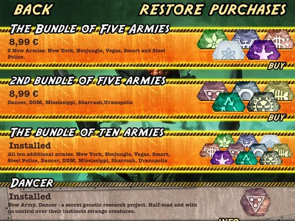 Con la versione base si hanno 4 fazioni, con gli acquisti “in-app” si possono aggiungere singolarmente o a pacchetti le altre, fino ad averne 16.