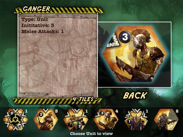 Una unità ha un numero che ne indica l’iniziativa (più è alta, prima si attiva) e uno o più simboli che indicano il tipo di danno che fa, a distanza/corpo a corpo/laser/esplosivo/etc…