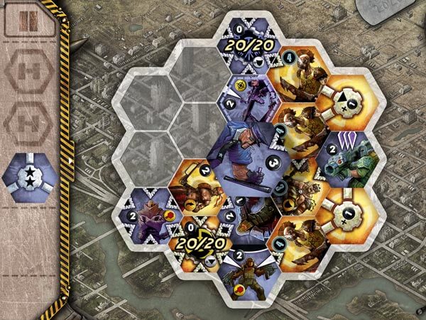 I simboli di attacco/difesa/rete infatti possono essere molteplici e dislocati su vari lati dell’esagono. Le unità avversarie (nel caso di attacchi) o proprie (nel caso di potenziamenti) che sono a contatto con uno specifico lato, subiscono gli effetti di quel lato, e solo di quello.