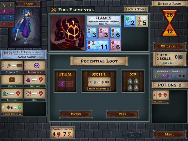 Dopo aver digerito l’interfaccia, non perfetta ma nemmeno terribile, ed aver fatto la prima partita di tutorial, devo ammettere che One Deck Dungeon App è quasi alla pari con la sua versione fisica.