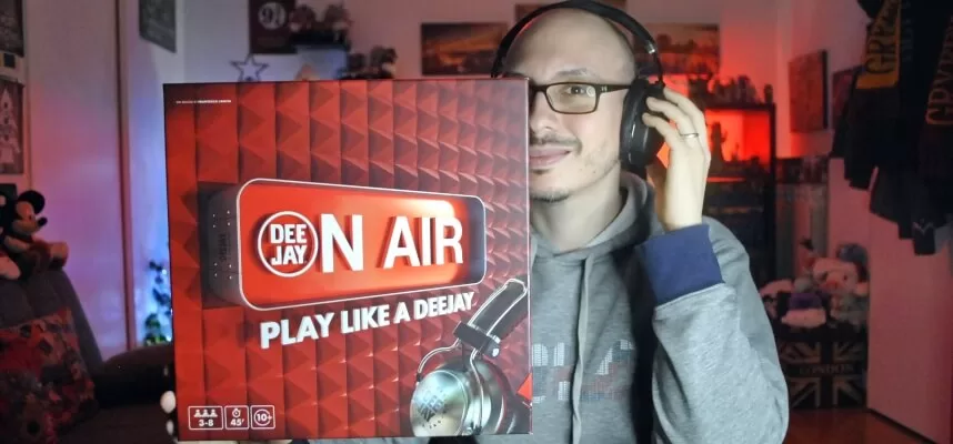 On Air – Play Like a Deejay è un social game competitivo per 3-8 giocatori, ideato e sviluppato da quel genio inarrestabile di Francesco Lancia, dalla durata di circa 45 minuti a partita ed edito da Asmodee.