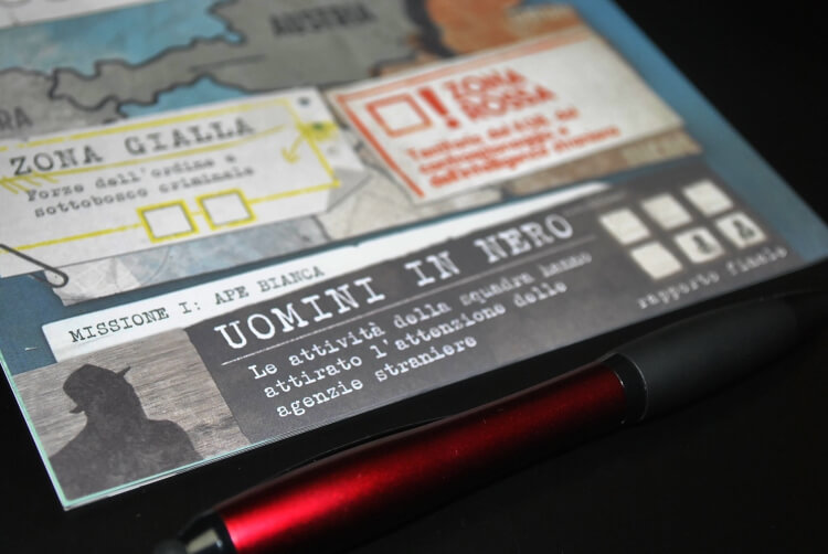 L’unica cosa che avrei cambiato sono le schede missione. Ce ne sono 2 per ogni capitolo della campagna, ciascuna di esse ha delle caselle da segnare per aumentare i diversi livelli di esposizione. Certo il gioco non è che abbia tutta questa rigiocabilità essendo un investigativo però avrei preferito del token in legno o cartoncino da appoggiarci sopra, in modo da poterli riutilizzare più volte.