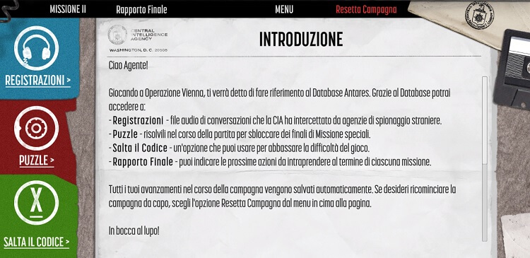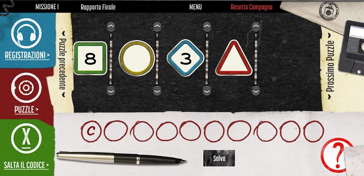 Ogni missione ha una scheda codice che servirà per risolvere alcuni messaggi cifrati, proprio come si faceva all’epoca! Alcune volte sarà scritto in modo esplicito quando usarle altre invece, toccherà a voi capirlo.