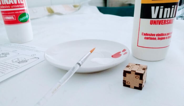 Quanto agli strumenti necessari, tutto quello che vi servirà è un po’ di colla vinilica ed un pennellino.