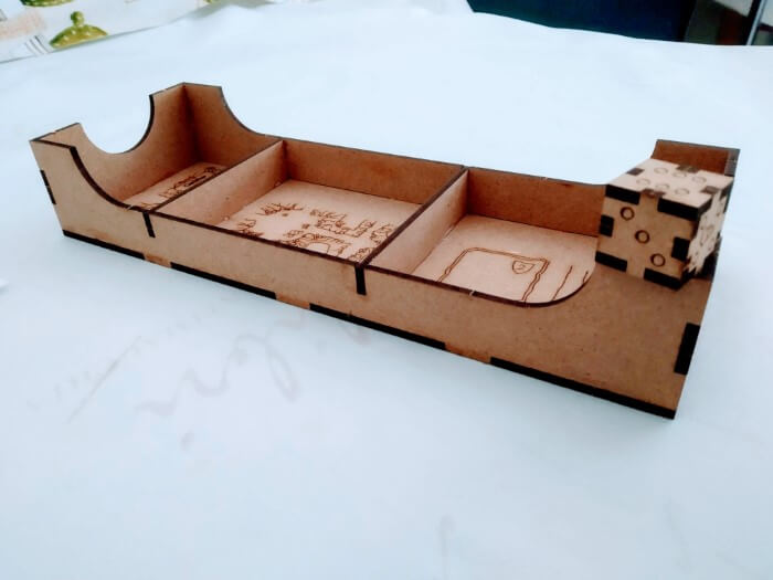 I ragazzi della The Dicetroyers, che da tempo creano splendidi organizer in legno per numerosi giochi, ci hanno infatti inviato proprio una copia del loro organizer per Caverna.