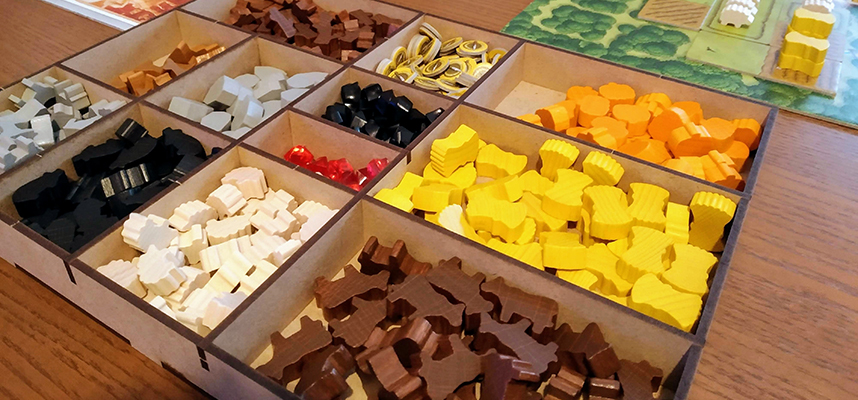 Una soluzione a questo problema, sono gli organizer. Si tratta di elementi mobili, da inserire all’interno della scatola del gioco, con la funzione di tenere in ordine meeple, token e carte e permettere un più rapido setup e risistemazione del gioco a fine serata.