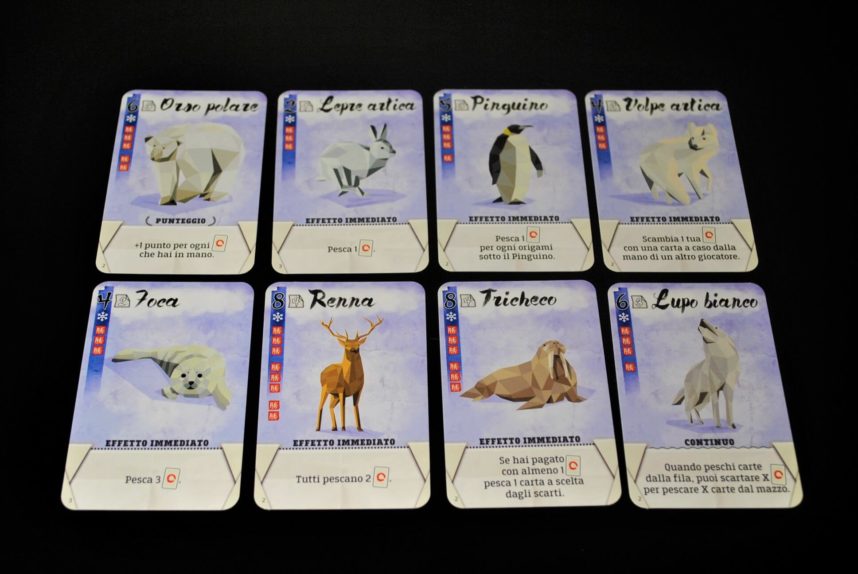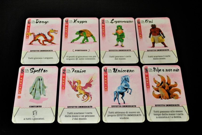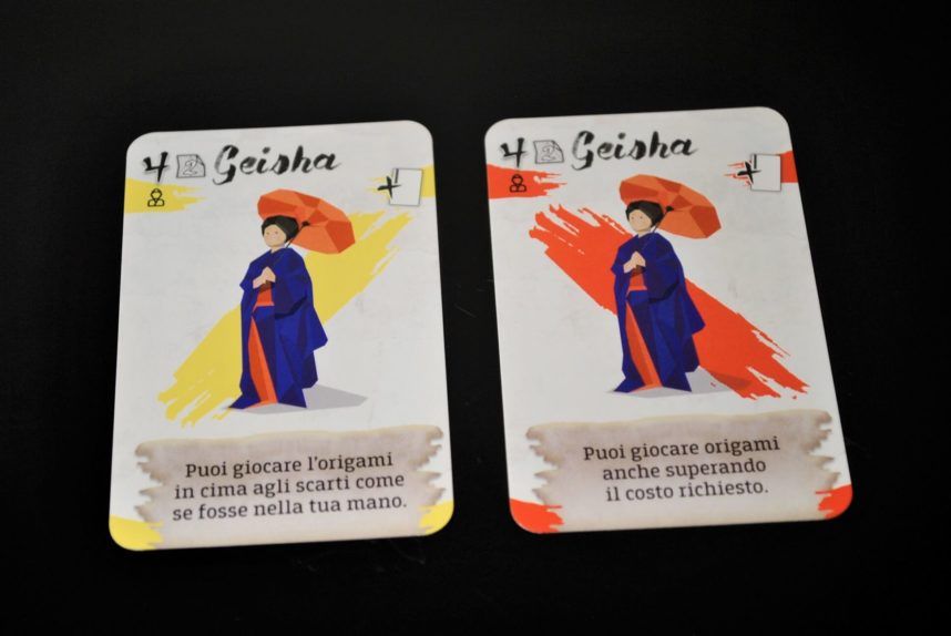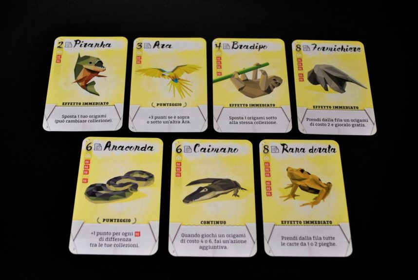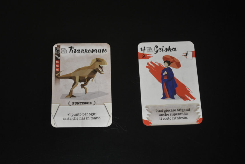 Per finire in fondo alla carta c’è l’effetto immediato o continuo dell’origami, o gli eventuali punti extra da aggiungere a fine partita.