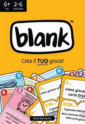 “Blank”, in distribuzione dall’11 Ottobre 2018, è un semplice gioco di carte, da 2 a 6 giocatori, interattivo, veloce e divertente che potrà essere personalizzato ad ogni partita! Quando giochi, infatti, puoi creare nuove regole ed effetti per le carte, rendendo la tua copia di BLANK totalmente unica. Scopo del gioco: sbarazzarsi per primo di tutte le carte della propria mano, facendo però attenzione alle Carte Regola che se non vengono rispettate porteranno a delle penalità. Vincere significa poter lasciare il segno, cambiando il gioco per sempre!