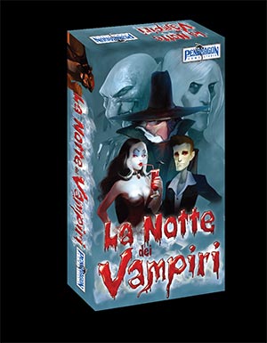“La Notte dei Vampiri”, in vendita nei negozi dal 27 Settembre 2018, è un party game da 6 a 20 giocatori, dove vampiri, cacciatori e lupi mannari tenteranno di uccidersi a vicenda in un susseguirsi di giorni e di notti.