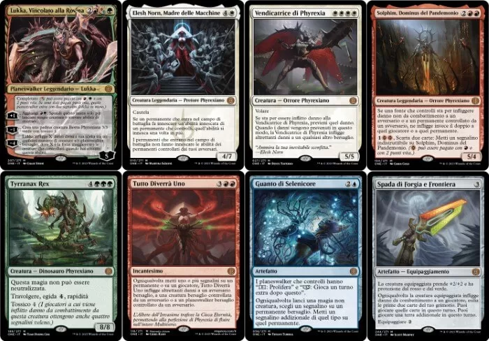 La Wizards of the Coast rilascerà Il 10 febbraio 2023 Phyrexia: Tutto Diverrà Uno, la nuova espansione di Magic the Gathering. Composta da 271 carte, più 208 in versione alternativa, l’espansione continua gli avvenimenti della saga del Multiverso contro l’invasione di Nuova Phyrexia. Per questo motivo, i principali temi dell’espansione sono: gli artefatti, i planeswalker e i segnalini veleno. Ritornano le seguenti abilità: Proliferare, Affinità, Flashback, Completato e Grido di Guerra. Tra le novità vediamo: