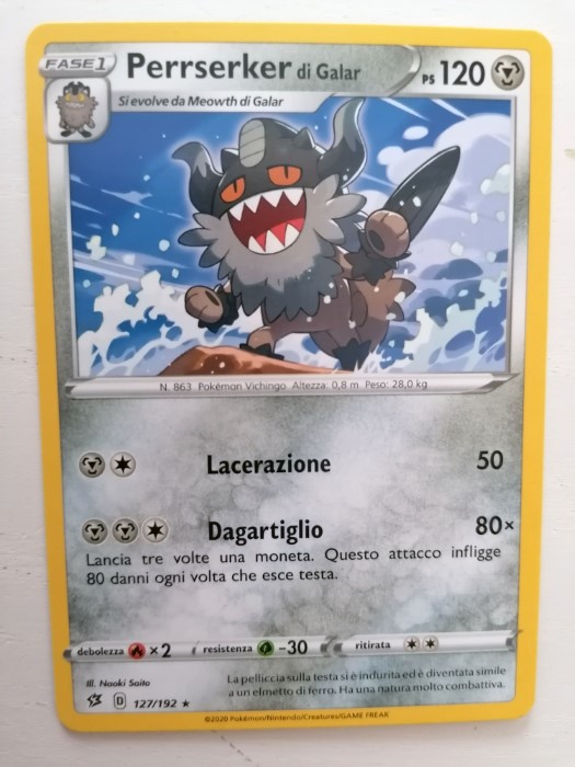 Anche qui ci troviamo di fronte ad un Pokemon potenzialmente devastante anche se in questo caso il fattore “fortuna è determinante”. Oltre a Lacerazione che prevede 50 Danni, la mossa Dagartiglio può infliggere da 0 a 240 Danni in base ad ogni “testa” x 80 ottenuto lanciando la moneta.