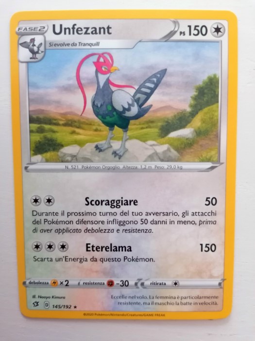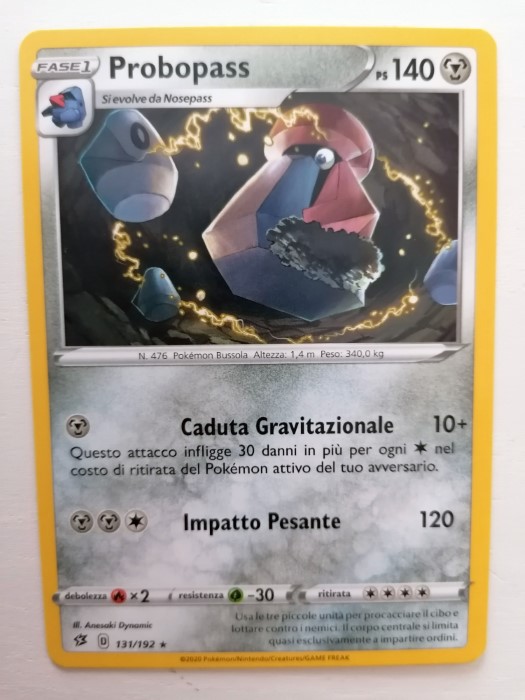 Altro buon pokemon di questo mazzo, non ha il costo di ritirata contenuto come Unfezant ma ha due mosse potenti: Caduta Gravitazionale (che aumenta i danni in base al Costo di Ritirata avversario) ed Impatto Pesante (che fa ben 120 danni).