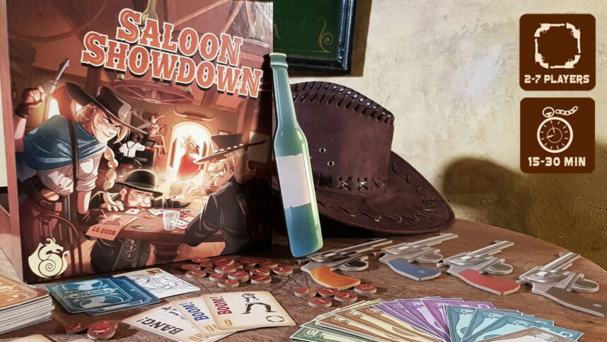In Saloon Showdown ogni giocatore rappresenta un personaggio che ha generalmente brutte intenzioni al tavolo e soprattutto una bella taglia sulla propria testa.