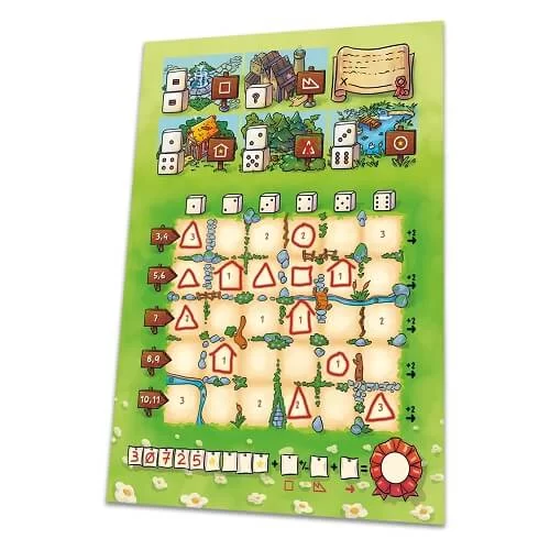Fai rotolare i due dadi e confronta il risultato con la leggenda incrociando le due soluzioni. Ad ogni turno potrai disegnare 2 progetti, ma attenzione al posizionamento per beneficiare del maggior punteggio possibile e schivare più malus che riesci!