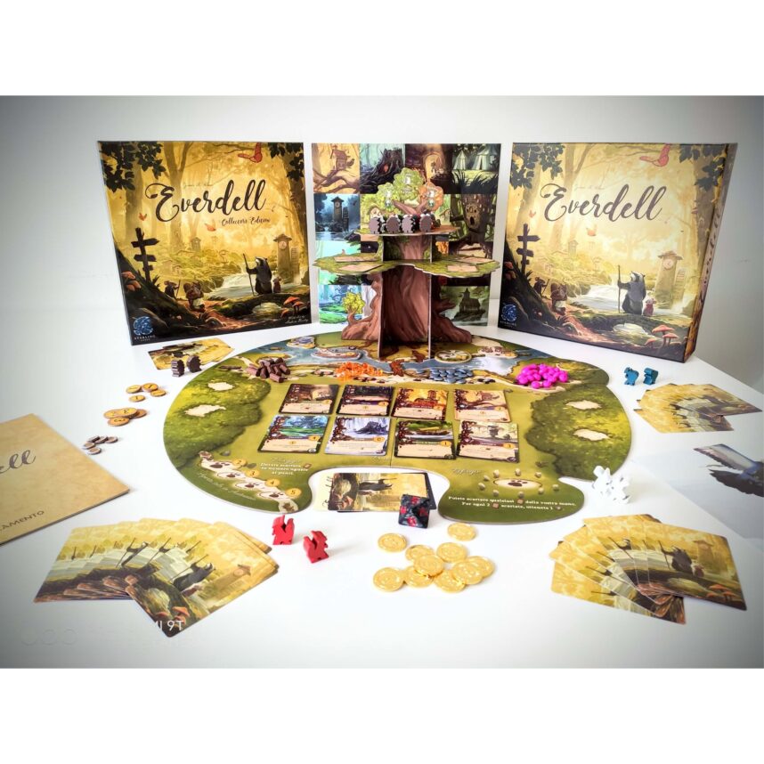 Presentato a Lucca Comics & Games 2019 ed esaurito in pochi mesi, Everdell è un gioco di piazzamento lavoratori e gestione risorse con una componentistica molto curata e una grafica decisamente attraente.