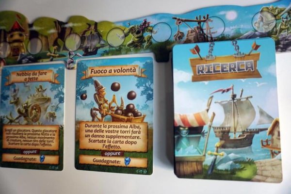 Degna di nota è sicuramente la possibilità di giocare una carta mercato (cioè acquistare una delle 3 carte mostrate nella relativa area, pagandone il costo in cristalli), che rappresenta l’unico modo per interagire e infastidire gli altri giocatori, potremmo infatti, distruggere le loro torri, inviare i mostri dalle nostre alle altre città e altre cose.