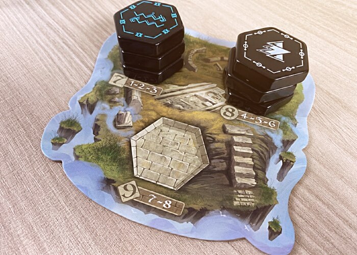 Il giocatore Jinn, più veloce, pescherà 3 tessere dal sacchetto dando il via a un piccolo draft: sceglierà una delle tre tessere, e passerà le rimanenti a Ifrit, che ne sceglierà una a sua volta. Sceglieranno a caso? Certo che no. In Akros, a parte l’estrazione dal sacchetto, nulla è lasciato al caso.