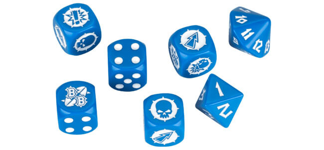 Altra particolarità sono i dadi nelle azioni di blocco e di blitz. Sono dadi a sei facce con sopra incisi i simboli che indicano il risultato dello scontro.