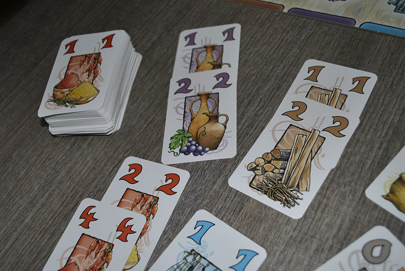 Bisogna fare attenzione a non puntare carte dello stesso tipo per non rimpinguare troppo il mercato con quella merce….merce che potrebbe essere presa per intero da un altro giocatore a fine turno.