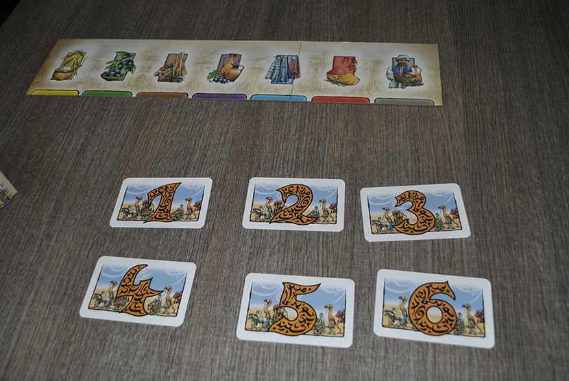 Ad ogni turno ciascun giocatore può vincere una sola asta puntando carte dalla propria mano, dopo aver acquistato le merci il vincitore dovrà posizionare le sue carte utilizzate per l’asta nella plancia del mercato.