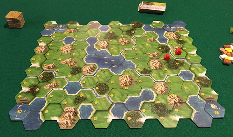 E’ composto esclusivamente da esagoni territorio, con un costo di “affitto”, che dovrà essere pagato alla banca assieme al costo di impianto dell’unità scelta (8 monete per una pecora, una caseificio o un forno, 9 per una mucca, 10 per una distilleria, 18 per un campo di grano, 6 per un boscaiolo e 10 per un minatore). Gli esagoni presentano tre tipologie di terreno (montagna, bosco e pianura) sui quali potrà essere piazzata una ed una sola unità. Abbiamo inoltre 4 porti, alcune zone lacustri e qualche fiume che attraversano il tabellone, creando varie zone non connesse tra loro.