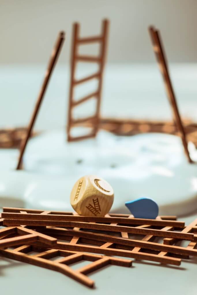 A turno ogni giocatore posizionerà una sola scala, usando solo una mano, il dado determina il modo in cui andrà posizionata