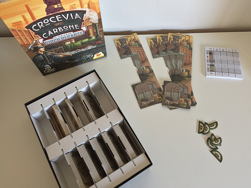 Oltre alle 4 plance di gioco e ai segnalini turno, l’intera componentistica di gioco è formata dai diversi mazzi di carte che rappresentano i lavoratori o le azioni da svolgere.