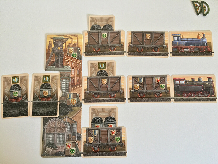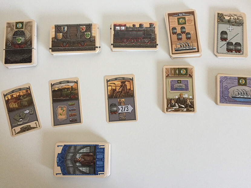 Ogni carta indica il numero di Punti Vittoria guadagnati, la destinazione della merce e il numero minimo di barili di carbone necessari per poter essere utilizzata.