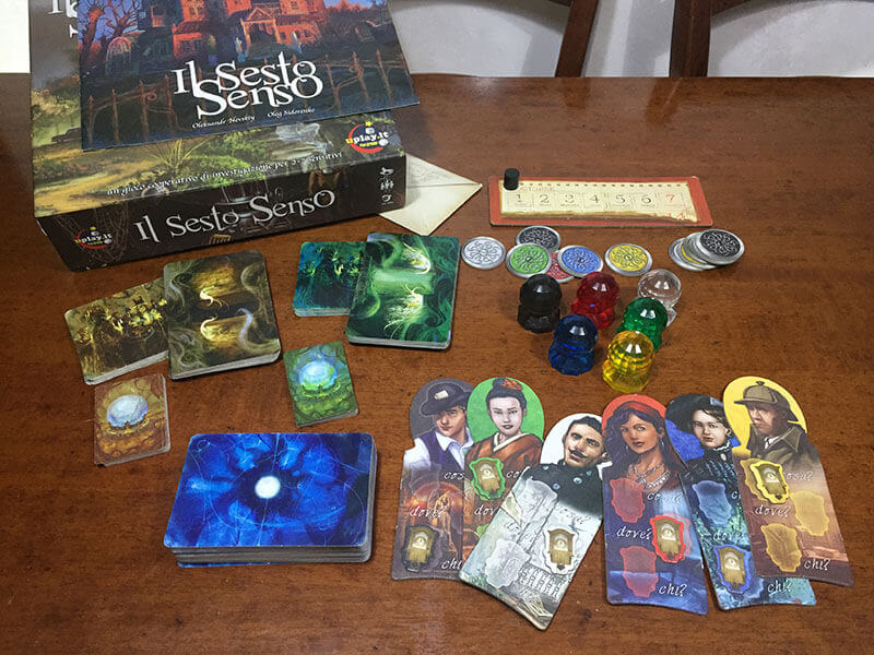 6 plance con altrettanti segnalini per rappresentare i 6 sensitivi ed il relativo avanzamento nell’indagine soprannaturale.