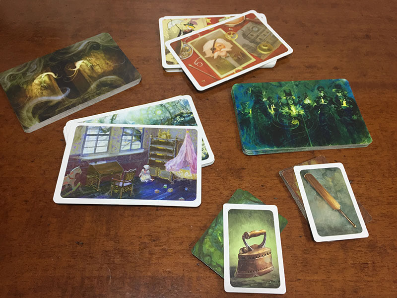 Prima di dare il via all’investigazione, il giocatore fantasma pesca dal suo mazzo (in maniera casuale e senza farle vedere agli altri giocatori) un oggetto, un luogo ed un personaggio per ognuno dei sensitivi in gioco.