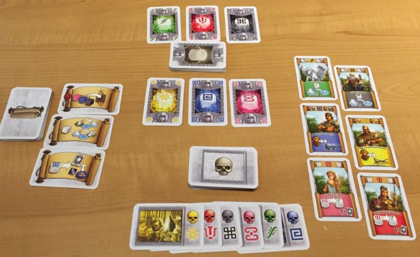 Ogni giocatore prende una plancia, lo scudo, una tessera nave, 6 segnalini divinità e alcuni segnalini favore, dopodiché pesca una carta ferita dal mazzo.