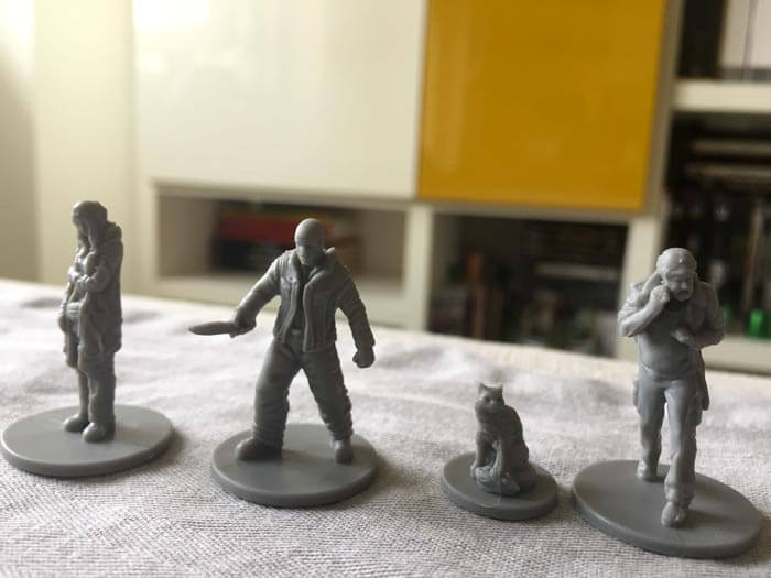 – il “Gatto”, con la relativa miniatura, che è possibile aggiungere al rifugio sia direttamente all’inizio della partita o quando lo si incontra in una delle storie. In entrambi i casi il suo comportamento sarà determinato dal dado e potrà aiutare i sopravvissuti;