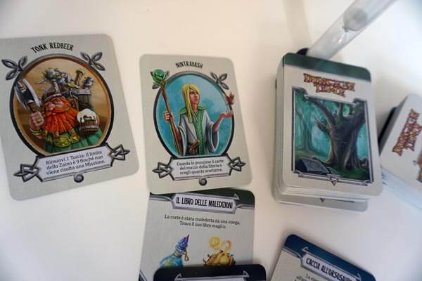 I giocatori guardano le proprie carte iniziali e quando tutti sono pronti, si da il via all’avventura girando la clessidra dalla durata di 5 minuti.