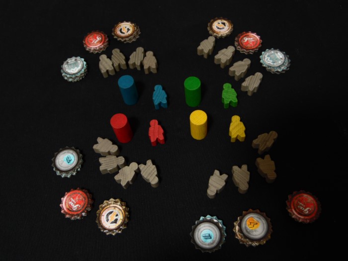 Ogni giocatore si prepara scegliendo un colore e prende il meeple e il token corrispondente. In suo aiuto ognuno avrà all’inizio altri quattro sopravvissuti con cui affrontare gli scontri e quattro segnalini di benzina, proiettili e adrenalina.
