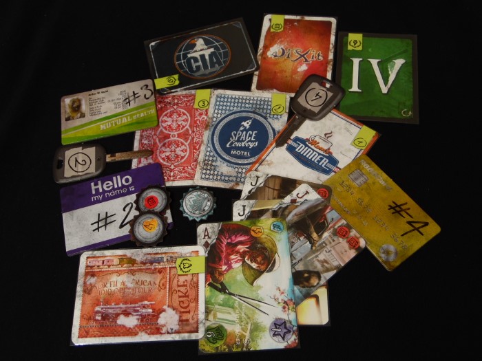I segnalini sembrano essere oggetti casuali trovati abbandonati: vecchie tessere rovinate, chiavi della macchina, tappi.