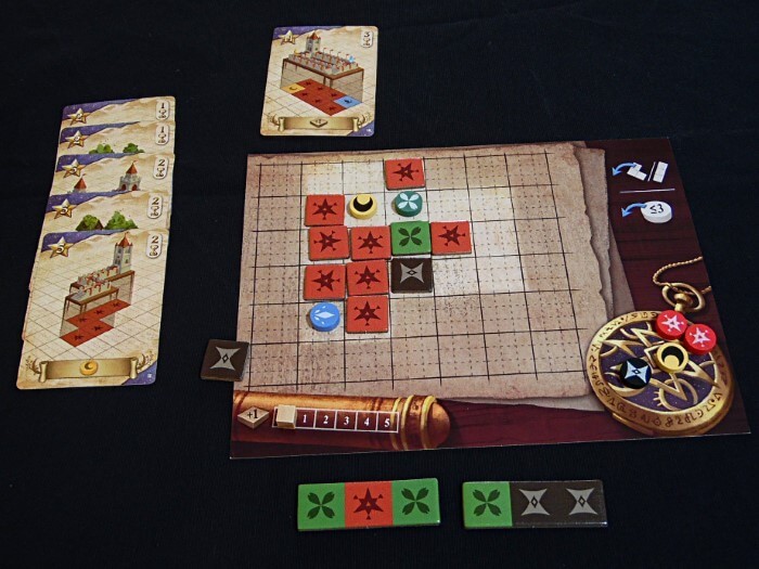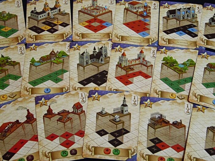 Quando con le proprie tessere e segnalini si ricrea l’edificio di una carta, questa può essere reclamata, le rune singole utilizzate tornano nella riserva generale e gli eventuali dischi elementali in quella personale.
