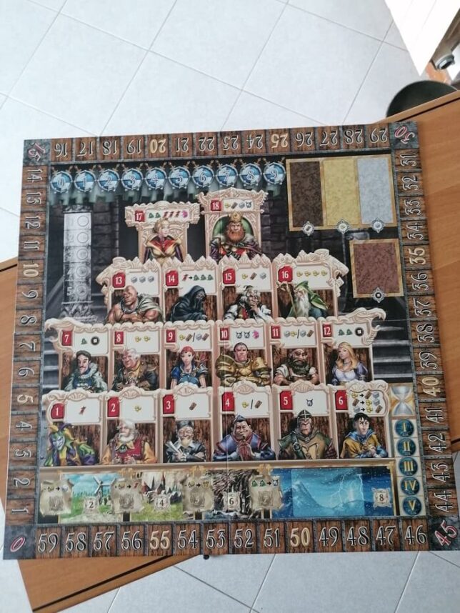 Il tabellone spicca su tutto, con le sue 18 caselle rappresentanti i consiglieri reali, ognuno con un tratto distintivo e un’artwork azzeccata.