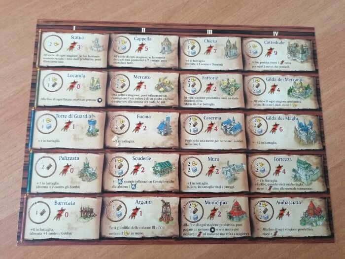 Per poter erigere palazzi e costruzioni, fortificare le difese e addestrare l’esercito, dovremmo ricorrere all’aiuto dei consiglieri reali attraverso il piazzamento dei nostri dadi, riscuotendo così le varie ricompense.