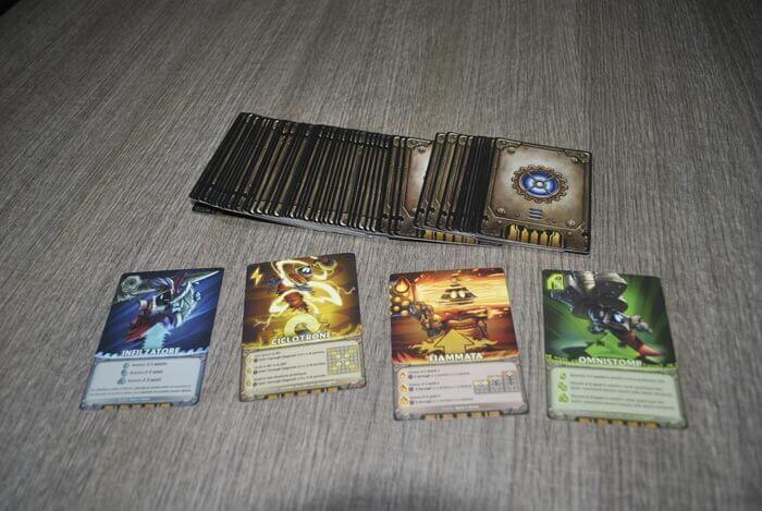 Carte della stessa tipologia possono essere accumulate nello stesso slot (massimo 3) per aumentare la potenza dell’azione descritta sulla carta messa in cima in quel preciso slot.