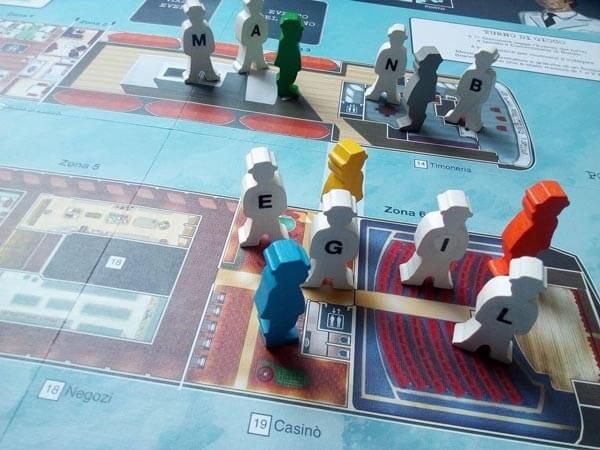 Quando si svolgono le indagini, un giocatore può scegliere in che modo eseguirle. Effettuarle rapidamente costerà un solo punto azione ma il detective sarà costretto a tirare il dado: con un valore da 8 a 10 quell’azione sarà annullata, con gli altri invece si procederà alla lettura a voce alta della risposta relativa alla domanda eseguita, che può essere sull’alibi di un sospettato, sulla sua testimonianza sull’accaduto o su un eventuale movente nei confronti del delitto, mentre si analizzerà semplicemente la stanza se si vorranno cercare indizi nel luogo. Spendendo due punti azione si effettuerà un’indagine discreta, ovvero si svolgerà lo stesso iter precedentemente descritto ma la lettura avverrà in segreto, impedendo quindi agli avversari di ascoltare il prezioso indizio. Con la terza opzione si pagheranno ben 3 punti azione ma non si dovrà nemmeno tirare il dado, andando quindi a colpo sicuro sulla scoperta di ciò che si vuole. C’è da ricordare che tutti i sospettati risponderanno sempre in modo veritiero e l’unico che può invece mentire sarà proprio il colpevole. A fine turno, un giocatore può spostare di uno o due spazi un sospettato per avvicinarne uno a sé o allontanarlo dai propri rivali, ponendogli accanto il segnalino personaggio mosso, rendendolo immobile al turno del giocatore successivo. Il gioco si conclude quando la nave arriverà in porto (e ciò avverrà seguendo i movimenti dettati da alcune carte evento) e a quel punto ognuno scriverà le proprie ipotesi e otterrà i punti relativi oppure quando un giocatore andrà nel luogo 6 e affermerà di conoscere la verità. A quel punto scriverà sul suo foglio due ipotesi diverse tra loro e le declamerà: tutti i giocatori potranno fare lo stesso per poi leggere il finale della storia. Ognuno prenderà i punti relativi a quelle azzeccate, ma il primo giocatore che ha tentato di risolvere il caso offrirà un malus di 5 punti agli altri per ogni sua risposta esatta e un malus di 10 per ogni errore proprio. Il vincitore sarà colui che avrà ottenuto il punteggio maggiore con le proprie deduzioni.