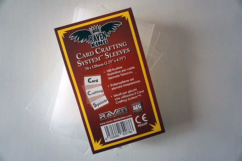 Nella scatola troveremo ben 100 bustine protettive progettate per coprire quattro mazzi di partenza con 20 carte ciascuno e fornire ricambi per ogni evenienza. Le bustine sono di ottima qualità, robuste e dopo un paio di partite sono praticamente perfette.