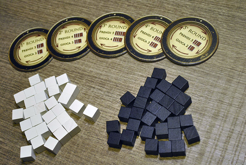 – Impilare i token segnaround al centro del tavolo ( il token 1° round deve essere in cima) in modo che sia visibile a tutti.