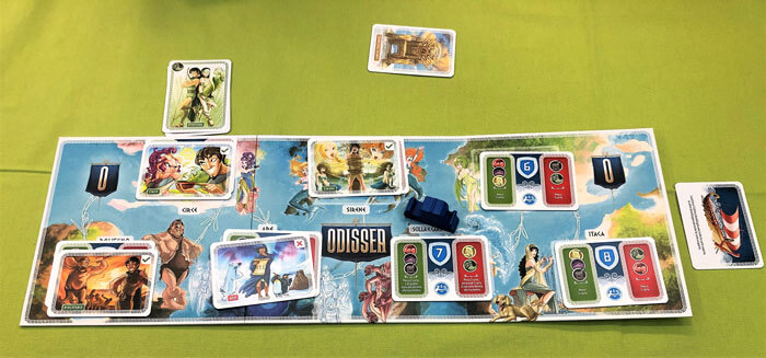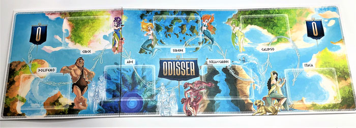 In Odissea da 3 a 6 giocatori interpreteranno divinità dell’Olimpo segretamente favorevoli o contrarie all’eroe, cercheranno quindi di aiutarlo od ostacolarlo nel compiere le 7 imprese che compongono il viaggio raccontato in questo gioco.